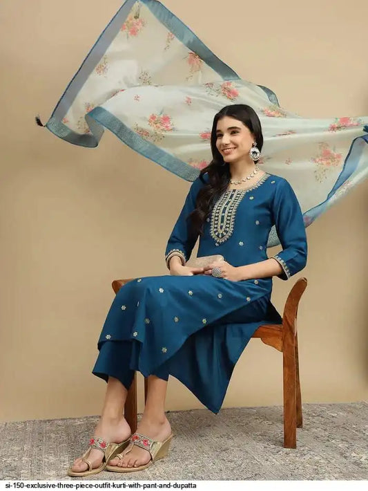 Exclusive Three Piece Outfit Kurti With Pant And Dupatta