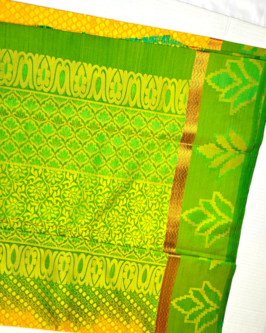 Golden yellow with Green Kuber Elite bridal rapier fancy silk saree