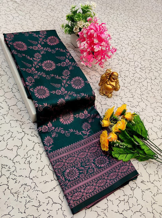 Dark Green Elite bridal saree with pink gold zari